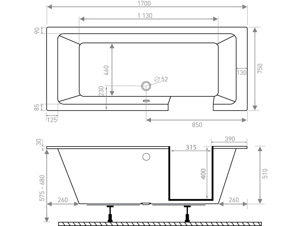 Prajete si vaňu inštalovať vyššie, napríklad kvôli potrebe opory o okraj pri vstupovaní? Panel s maximálnou výškou 68 cm je možné taktiež rezať a upraviť na mieru, čím získate široký rozsah nastavenia výslednej výšky vane. Vďaka tomu je zabezpečený ľahký vstup aj dostatok priestoru na správne spádovanie odpadového potrubia.