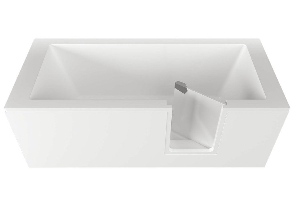 Vaňu EASY STEP je možné osadiť aj čiastočne do priestoru, a to s jedným čelným a dvoma bočnými panelmi, čím vzniká praktické a estetické riešenie aj pre atypické kúpeľne.